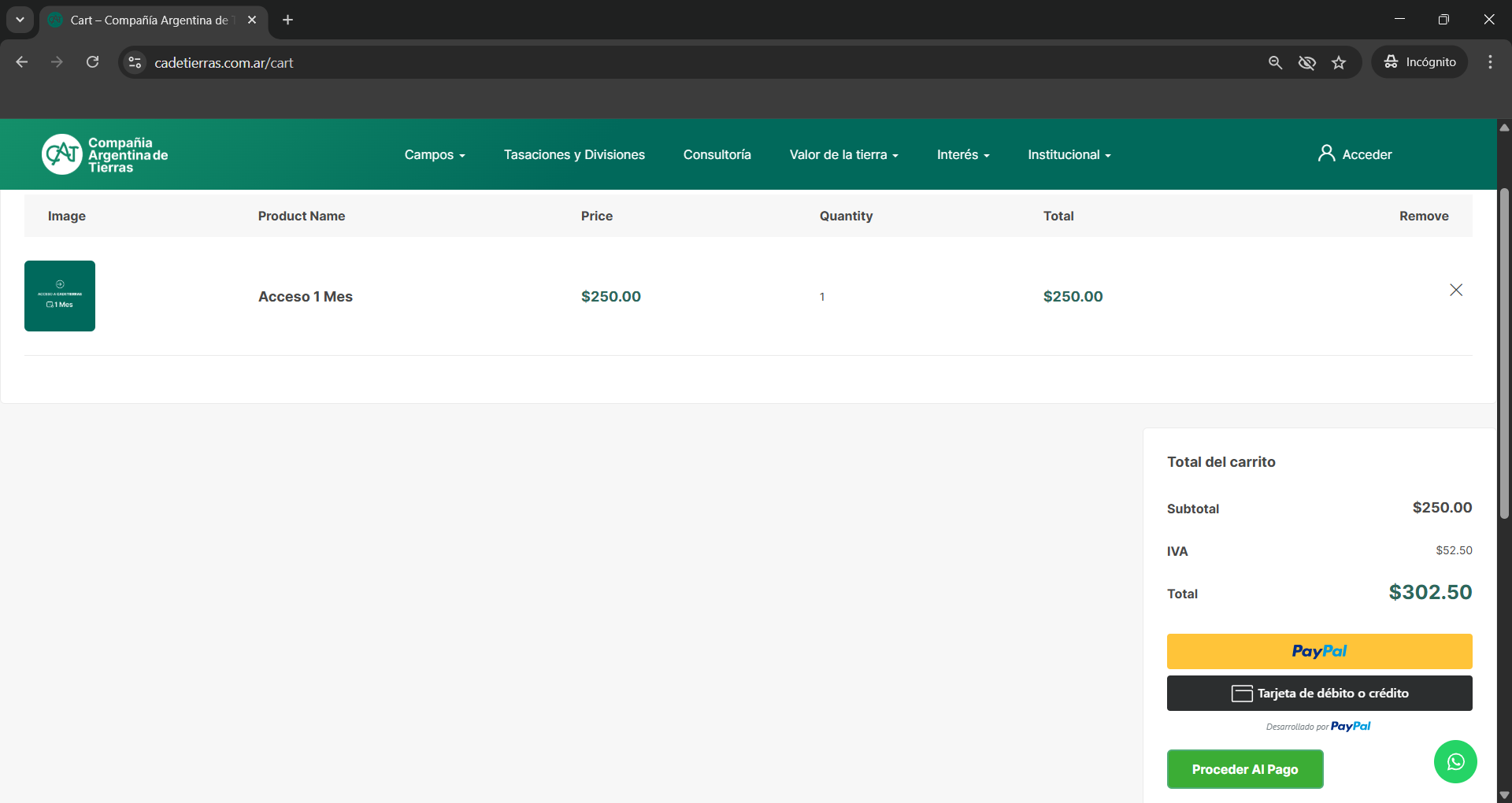Para acceder a la compra de uno de nuestros productos, debe acceder por uno de los botones de pago.
